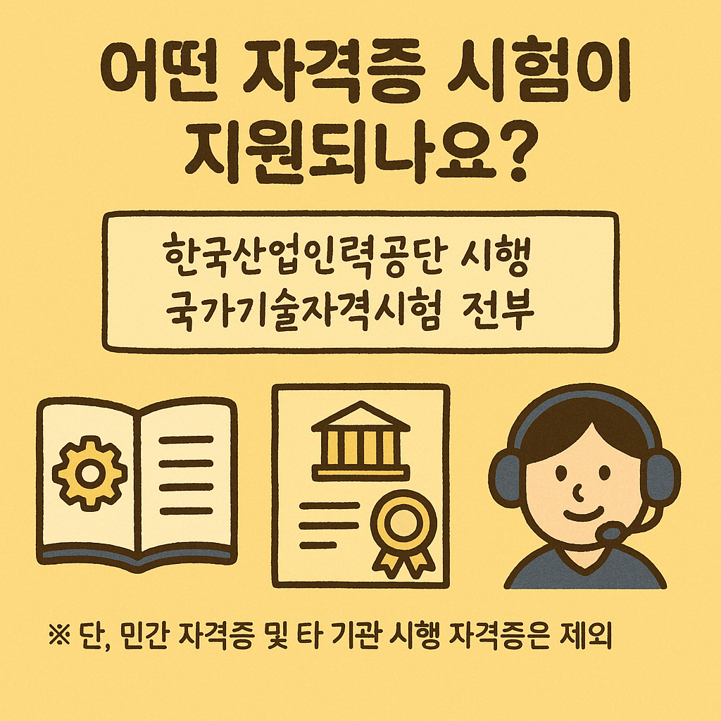 | 컴퓨터활용능력 / 워드프로세서 | ✅ 지원됨 | 대한상공회의소 시행이지만, 공단 포함 기술자격으로 인정 |