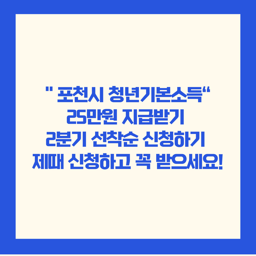 포천시에 거주하시는 만 24세 청년 여러분, 주목해 주세요. 소득이나 재산 기준 없이, 오직 거주 요건만 충족하면 분기별 25만원을 지원받을 수 있는 포천시 청년기본소득(경기도 청년기본소득) 제도를 소개해 드립니다. 현재 2분기 신청이 진행 중이오니, 이 기회를 꼭 놓치지 마시길 바랍니다.